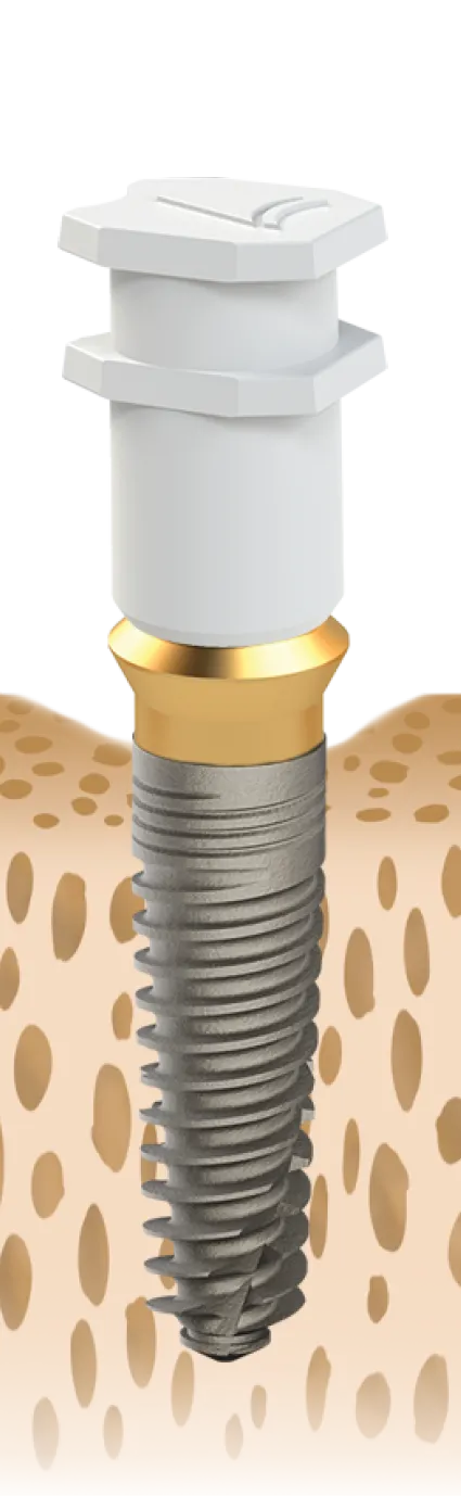 Equator olarak bilinen Clicq™ Overdenture, geleneksel overdenture abutmentlardan daha dar bir profil sunar.