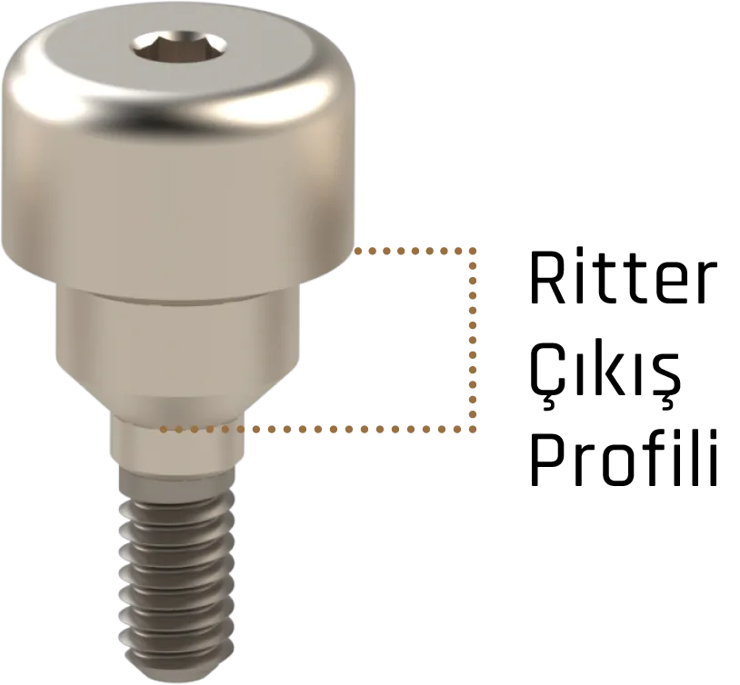 Ritter Abutmentları, yumuşak dokuyu estetik bir şekilde kavramak amacıyla doğru bir çıkış profili sunar.